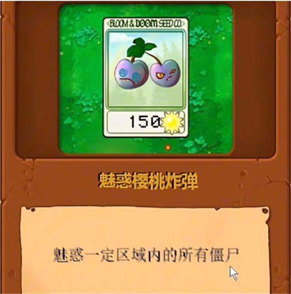 3、魅惑樱桃炸弹:将可以用自己的实力来魅惑一定区域内的僵尸们,使得僵尸原来返回;