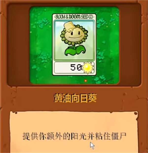 2、黄油向日葵:一种全新的向日葵植物,具有黄油投掷的能力,可以用自己头顶的黄油来黏住不断进攻的僵尸们,还能够进行额外阳光的提供;