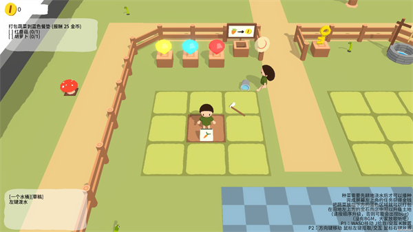 3、一个人种植,另一个人可以做其他的事情或者是打下手,但是视觉不会变大,视角会锁定在1P玩家身上;