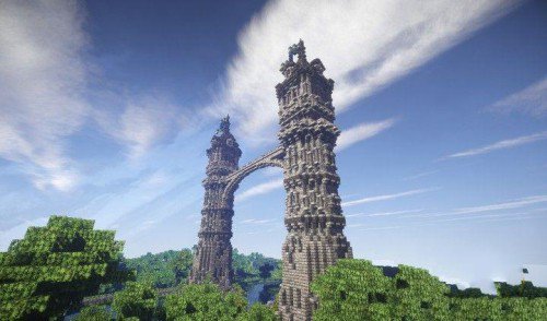 我的世界地图存档中世纪双子塔楼是由两个中世纪塔楼所组成的建筑,中间通过一座石桥相连接,显得非常壮观高耸入云。
