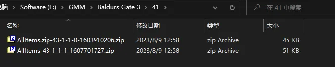 3、如果遇到这个问题需要将压缩包拖入管理器中,这样就会正常自动的识别到mod类型。