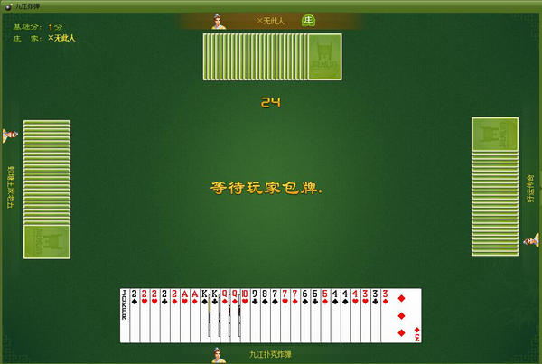 九江炸弹采用四个人,两副牌,二打二的方式,对家是暗的,需要找朋友,特色又趣味,玩味十足