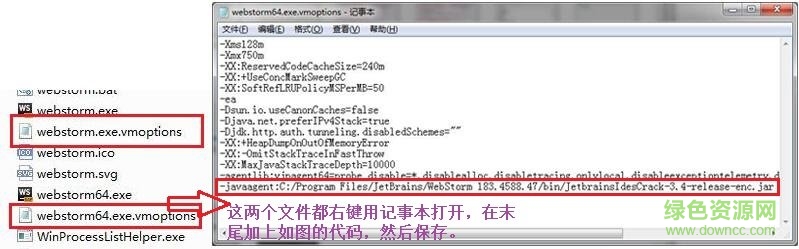 (ps:-javaagent:C:/Program Files/JetBrains/WebStorm 183.4588.47/bin/为安装路径,不能错,错了的话,软件是无法打开的)