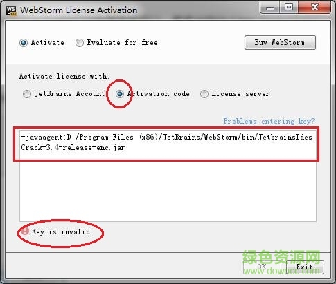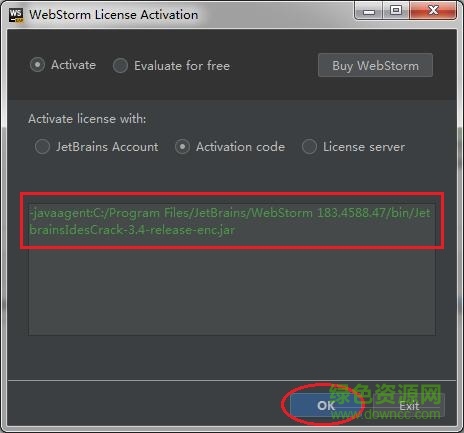 5.选择“Activation code”,将上面加入的一串代码贴到方框中,点击”ok“即可