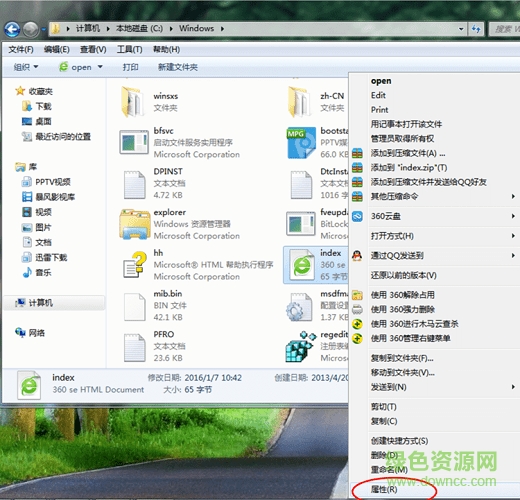 第五步:如图,对着index图标单击鼠标右键,选择“属性”。