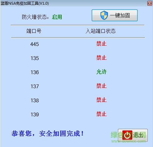 蓝盾NSA免疫加固工具是一款专为此次勒索病毒推出的系统端口号和防火墙加固软件,让你的系统可以更加安全免受病毒感染!绿色资源网诚意推荐!