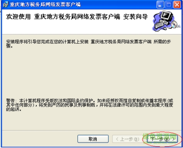 安装过程中提示如下错误,请先卸载之前安装的网络发票客户端、然后再进行安装。