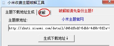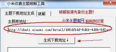 打开小米收费主题修改工具,把地址贴到里面(如图),点击“生成下载地址”