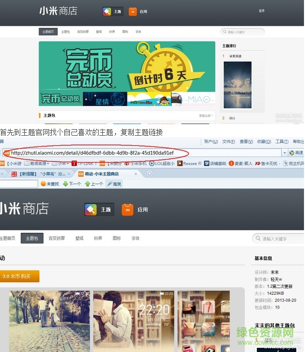 先去小米看看有哪些喜欢的主题,复制主题的链接地址