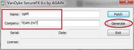 4.在Name中输入ygeR,在Company中输入TEAM ZWT(切记不要输错了),然后点击“Generate”,会生成相应的激活信息
