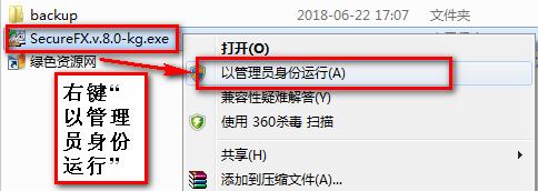 3.打开注册机文件夹,右键“以管理员身份运行”SecureFX.v.8.0-kg.exe(ps:必须以管理员身份运行,不然会失败)