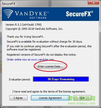 1.打开SecureFX软件,选择“ok”,然后点击中间的“Enter License Data”