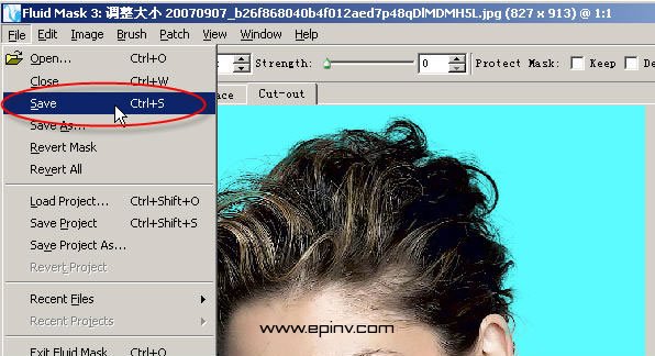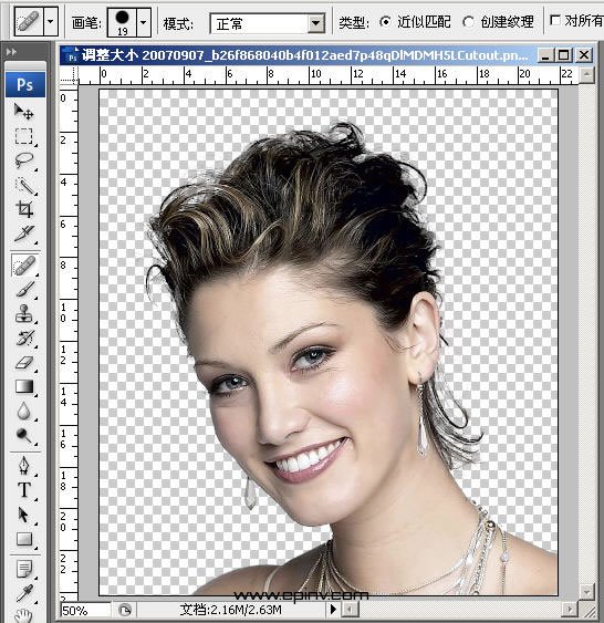 5、在Fluid Mask 3在调整笔刷大小跟PS一样,可以用“[”和“]”这两个快捷键。注意,头发边沿因为有透明区域,所以不要画上。