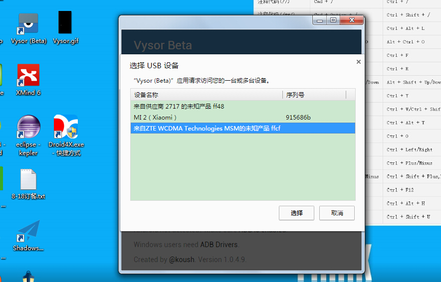 如果手机提示安装Vysor的app,要准奏!等一小会你的手机屏幕就显示在电脑上了。。。噢耶!