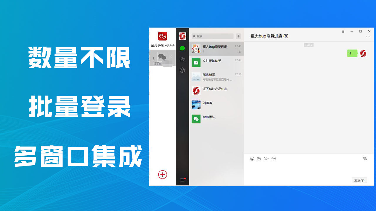 金舟多聊微信多开软件是一款简单、易用的微信电脑PC版多开工具,可以同时维护多个微信号,微信消息提醒让管理更加便捷,可以有效提升客服人员沟通效率,帮助企业用更少的客服,服务更多客户。