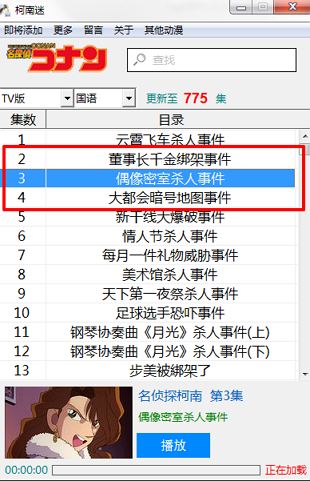 打开软件柯南迷,选择是看TV版还是剧场版,以及国语还是日语