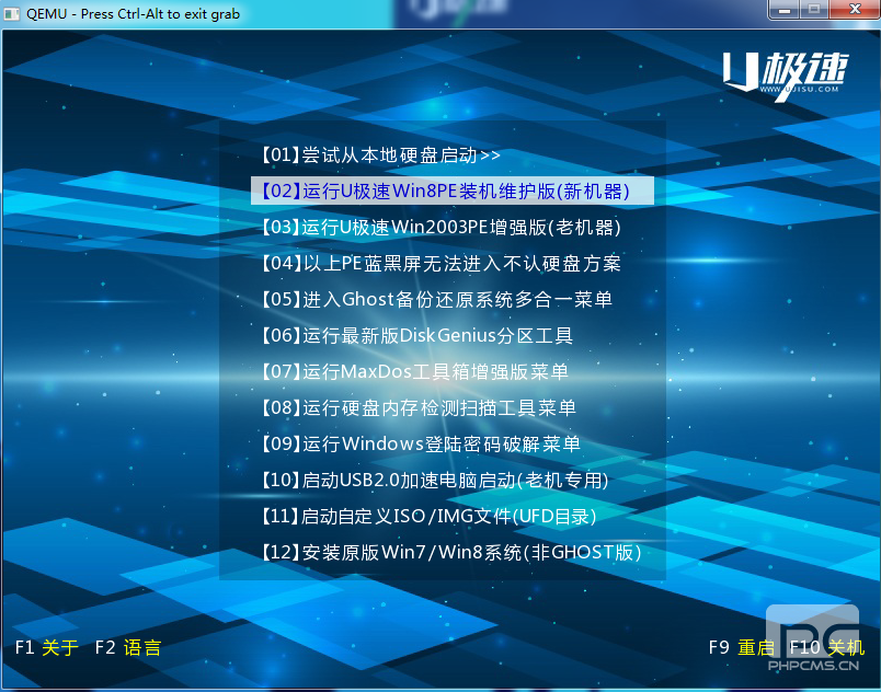 我们可以通过软件自带的"启动模拟器"进行U盘启动盘的启动测试操作,在弹出的电脑模拟器窗口可以看到模拟电脑开机启动U盘的界面,测试完毕按住"Ctrl+Alt"组合键即可关闭窗口(测试过程千万不要进行测试PE系统等工具),如图所示: