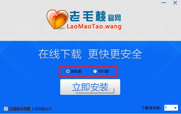 软件简介:老毛桃U盘自由设首版是目前唯一能让用户,下载站设置自己喜欢的首页的U盘工具,是最快捷方便的U盘安装系统的工具,她适用于多种品牌的U盘,用户反馈均予以各种好评,便捷的操作方式一键制作。真正是一款人人都会用U盘安装系统的好工具,无需教就会如何用u盘装win8系统,用u盘安装win7系统;并且支持各种电脑机型及系统。
