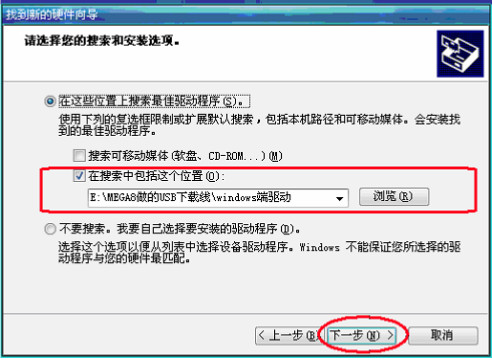 选择从列表或指定位置安装,找到驱动程序所在的文件夹[windows端驱动]