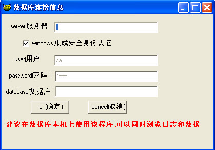 程序功能:找回误删除的数据:请在SQL数据库文件所在机器上运行该程序,否则只能浏览日志,无法浏览删除的表数据。