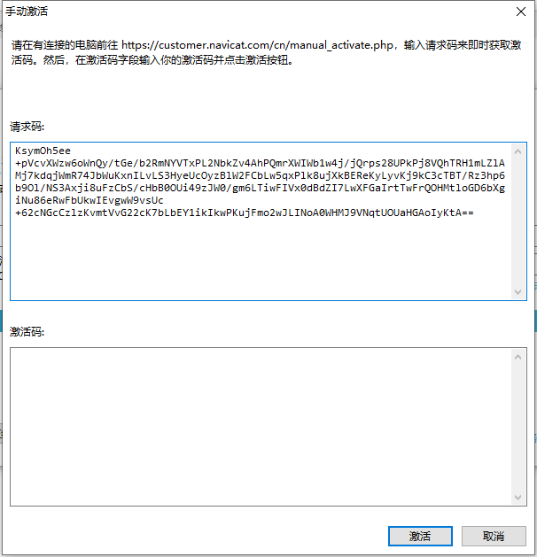 7.将上面的激活码复制到手动激活窗口中,并点击“激活”