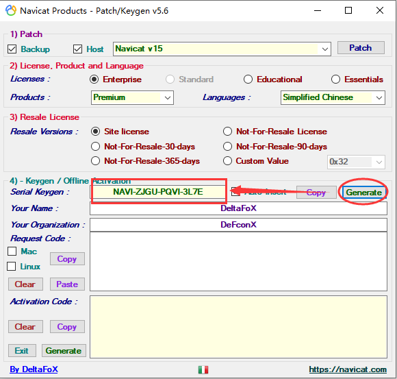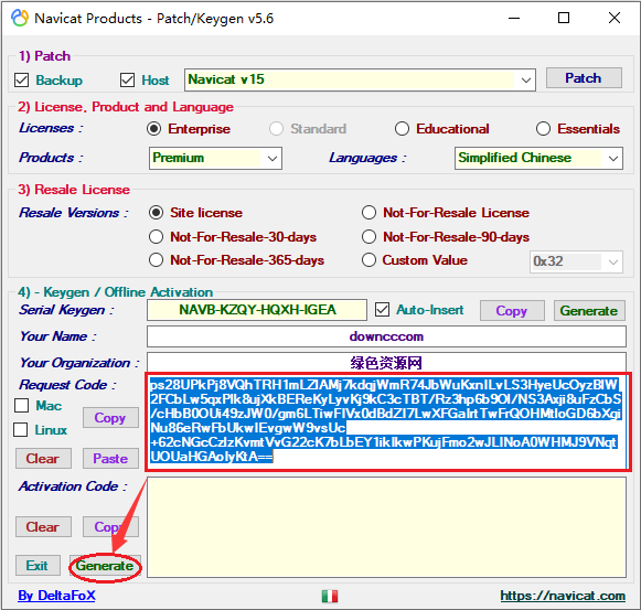 上面几项设置好后,点击“Generate”,会自动生成一个注册码,如下图