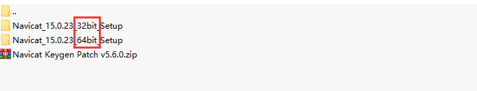 1.下载并解压缩navicat premium15,压缩包中包括了32位和64位,请根据自己的电脑选择安装
