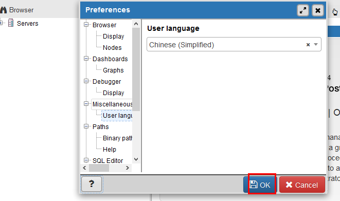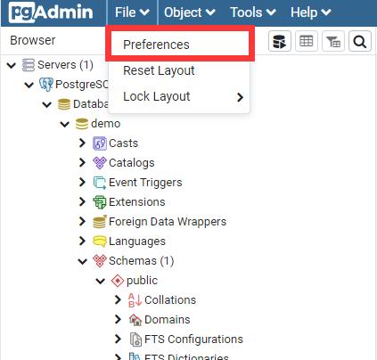 紧接着,弹出了如下所示的pgAdmin4的首选项设置窗口。