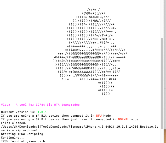./vieux -i /Users/dk/Downloads/i4ToolsDownloads/Firmware/iPhone_4.0_64bit_10.3.3_14G60_Restore.ipsw