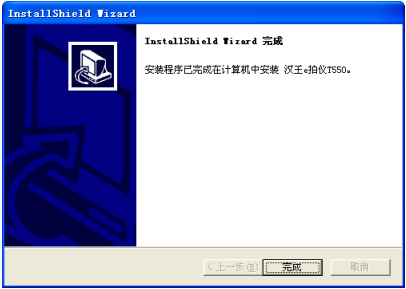 3) 单击“完成”,完成汉王e拍仪 T550软件安装;
