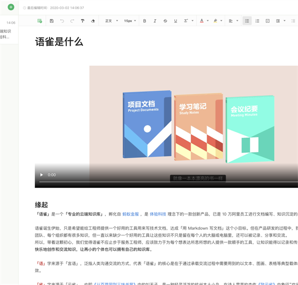 语雀是一款把文件数据上传到云端数据库管理的管理软件,它为用户管理所存储的文件,避免其丢失,同时也为用户提供一个可以与他人共同合作的工作平台,上传的信息公开但仅限团队间的人员,可以实时修改共享,无论是个人还是团队都是一个优选。