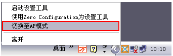 三、由于USB网卡默认的是station模式,所以需要进行模式切换。右击电脑右下角tenda标识的网卡UI图标,点击“切换至AP模式”。如下图所示: