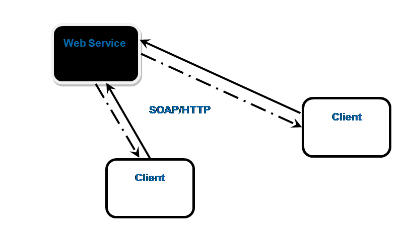客户端根据 WSDL 描述文档,会生成一个 SOAP 请求消息,该请求会被嵌入在一个HTTP POST请求中,发送到 Web Services 所在的Web 服务器。Web Services 请求处理器解析收到的 SOAP 请求,调用相应的 Web Services。然后再生成相应的 SOAP 应答。Web 服务器得到 SOAP 应答后,会再通过 HTTP应答的方式把信息送回到客户端。