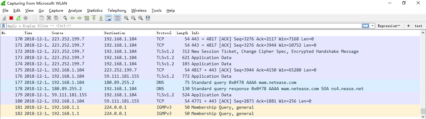 通常使用捕获过滤器过滤后的数据,往往还是很复杂。为了使过滤的数据包再更细致,此时使用显示过滤器进行过滤。