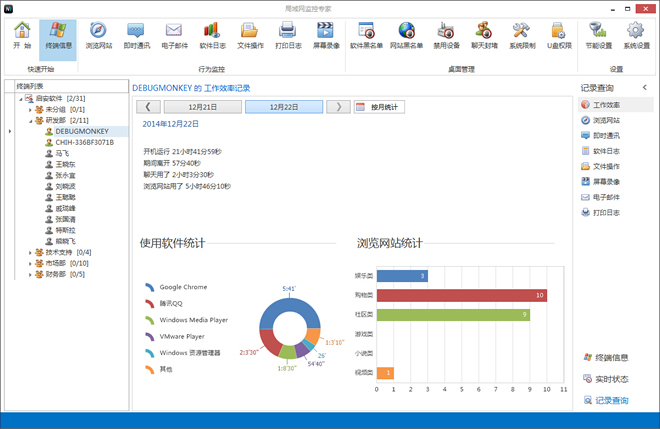 软件监控软件监控:查看用户使用软件日志,看看是否经常使用一些和工作无关的软件