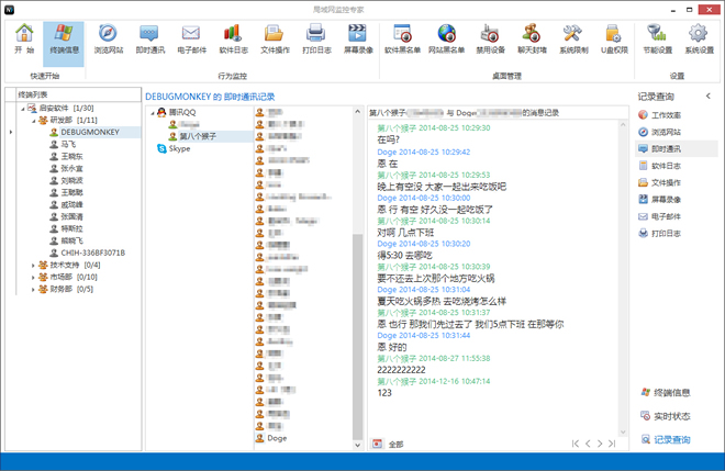 聊天监控聊天监控:全面支持qq、腾讯TM、阿里旺旺、MSN、Skype等十余种聊天软件
