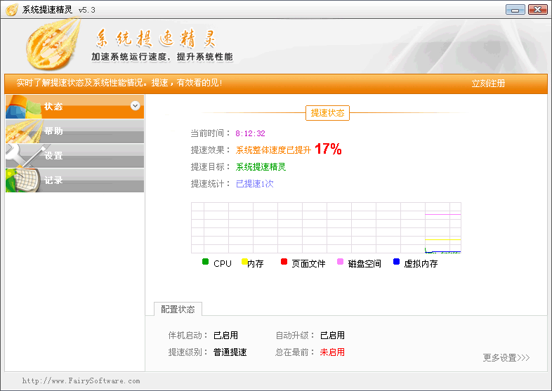 系统加速精灵是一款小巧而实用的系统加速软件,软件通过实时调度有限的CPU资源给活动应用程序,从而加速程序运行速度。可让您的系统跑的更快。本软件适合各种配置机型使用,平均可使系统运行速度提高15%-30%。对于硬件配置较低的机器效果更为明显。需要的朋友快来绿色资源网下载吧!
