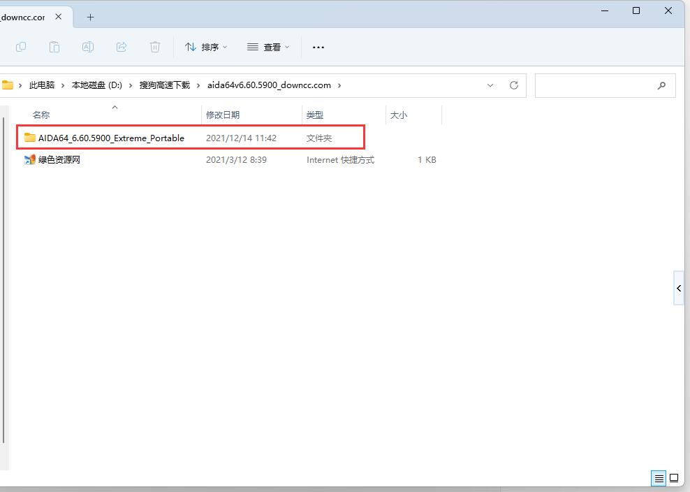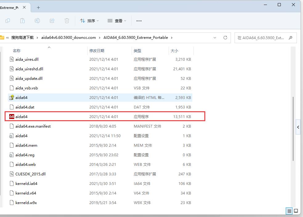 2、在解压出来的文件中找到【aida64】应用程序图标,双击左键启动;
