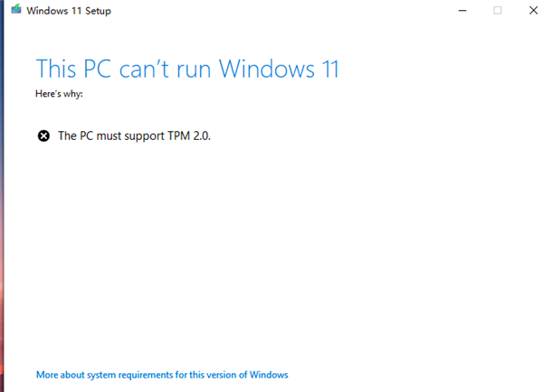Windows11原版镜像后发现需要电脑支持TPM2.0否则将无法安装 实在恶心