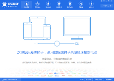 爱思助手电脑版是一款帮助用户对苹果手机系统进行一键刷机的强力软件,软件只需要进行一键启动,即可对手机进行自动刷机,无论你懂不懂,只需要一键。该软件的界面清晰简洁,没有广告,免费使用,完全为用户着想。