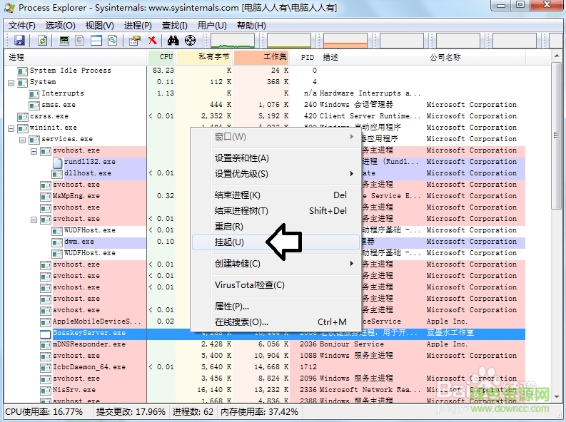6.若电脑很卡,可以使用Process Explorer查看正在运行的程序,结束进程即可。