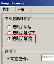 1. 按下冰点还原快捷键(Ctrl+Alt+Shift+F6),调出冰点还原的设置界面,将状态设置成“启动后解冻”,然后点击在“应用并重启”。