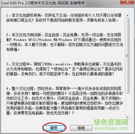 14.最后我们来汉化,打开“Cool2chinese.exe”文件,点击“接受”按钮