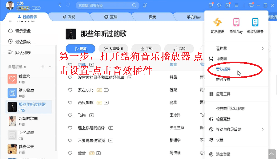 第一步,打开酷狗音乐播放器-点击设置-点击音效插件