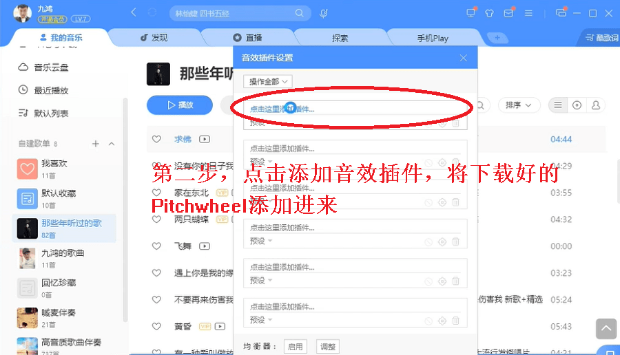 第二步,点击添加音效插件,将下载好的Pitchwheel添加进来