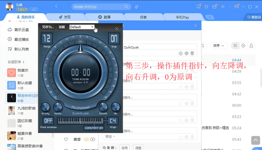 第三步,操作插件指针,向左降调,向右升调,0为原调