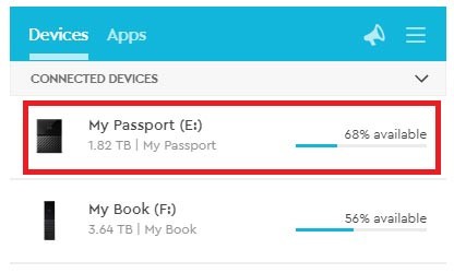 管理您连接的WD设备,如My Passport 和My Book驱动器。