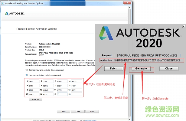 3.复制激活码→点击Generate→复制进去,如图