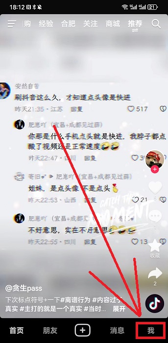 1、首先肯定是要打开抖音,一般都是会在播放界面,然后用户需要点击右下角的【我】进入到个人界面;
