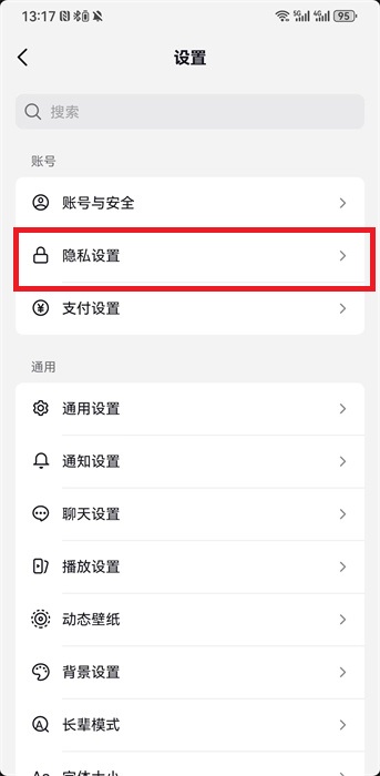 3、接着就需要打开其中的【隐私设置】去对自己的账号进行设置;